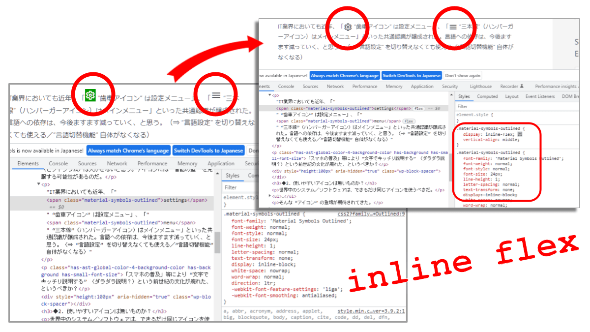 It is a hassle to enter span tags when editing as HTML to begin with. Font Awesome is a stable editing tool because you don’t have to switch to Edit as HTML by entering a shortcode. (⇒Material Symbols (and Material Icons) should also be made into a plug-in)