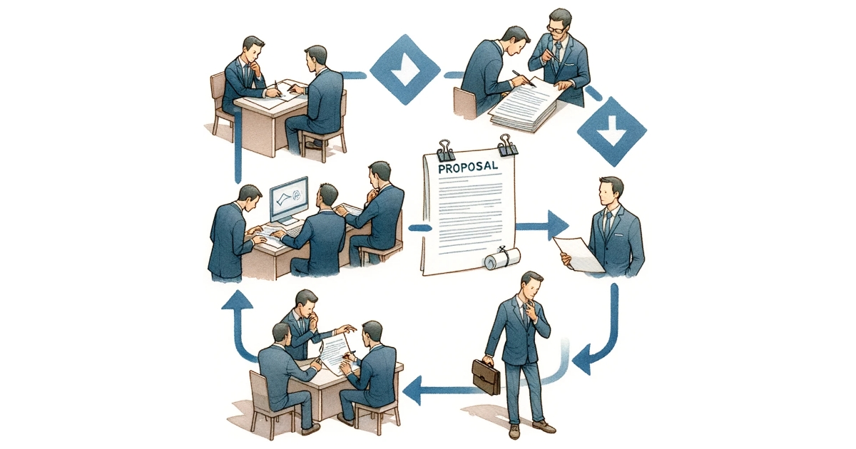 「見積書」は顧客との商談の中で提出されるものです。およそ「見積書作成業務」と言うビジネスプロセスはセールスチームが主管し、あるべき姿の検討も、セールスチームが主導して実施すべきです。