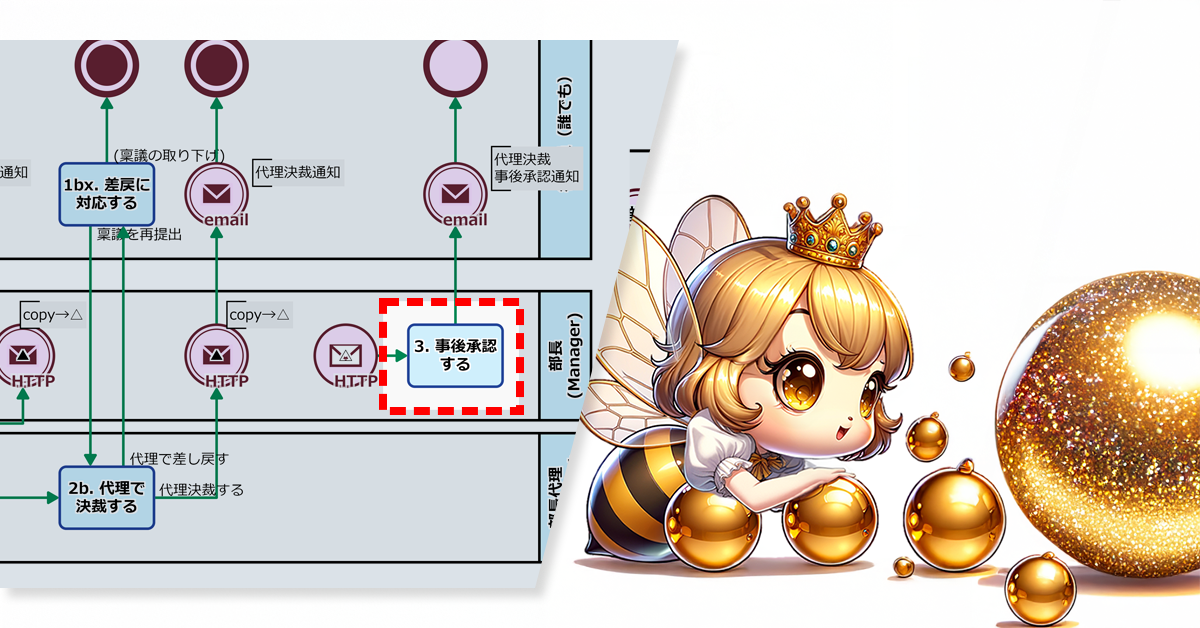 - 代理決裁シグナル▲: 代理決裁されたため、部長の事後承認をリクエストするシグナルがHTTP信号が発出されます。