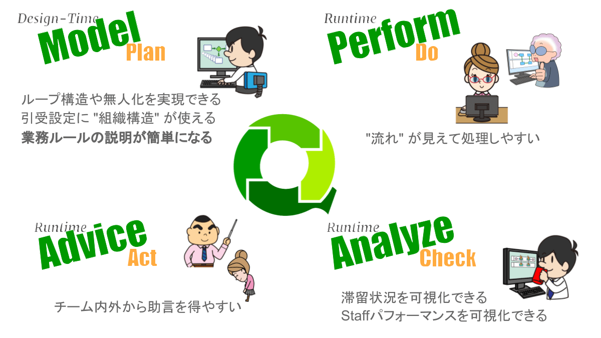 You can apply it to various business operations such as an Approval request flow, Document translation flow, Quality check process, and Invoice issuance process. Process owners of each Business Process can practice the Improvement of Business Processes little by little in daily work. (Examples of Business Flow Diagrams: https://questetra.zendesk.com/hc/en-us/articles/360012492211 )