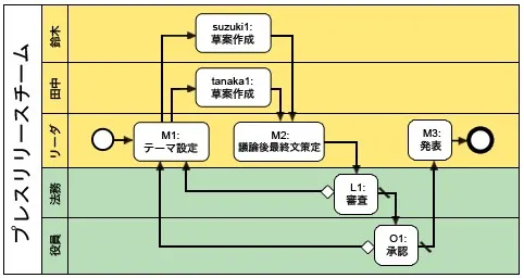 でもあります。2009年現在、BPMN1.2が策定されています。そして近い将来、「Business Process Modeling Notation 1.2」から、「Business Process Model and Notation 2.0」に出世(?)する予定ですが、今のところ気にしないでください。 (編注:気になる・・・)